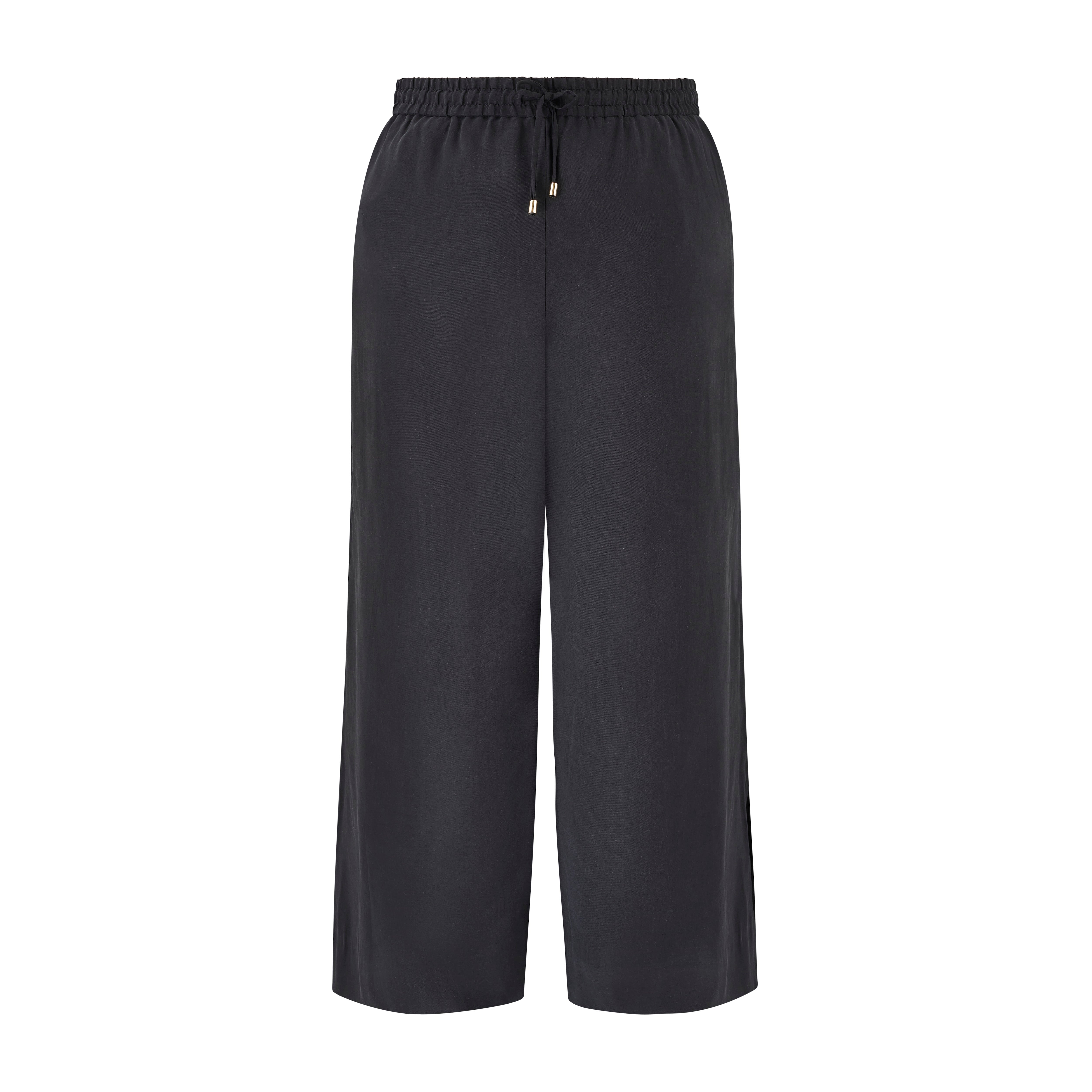 Just like their linen 'cousin', we've crafted our classic casual trousers in a soft, buttery viscose. Featuring a wide leg and split seam at the ankle, they're ideal for mild climates. With a comfortable high rise, elasticated drawstring waist, and, yes, pockets. They're perfect for casual outings around town or enjoying warm summer evenings.
