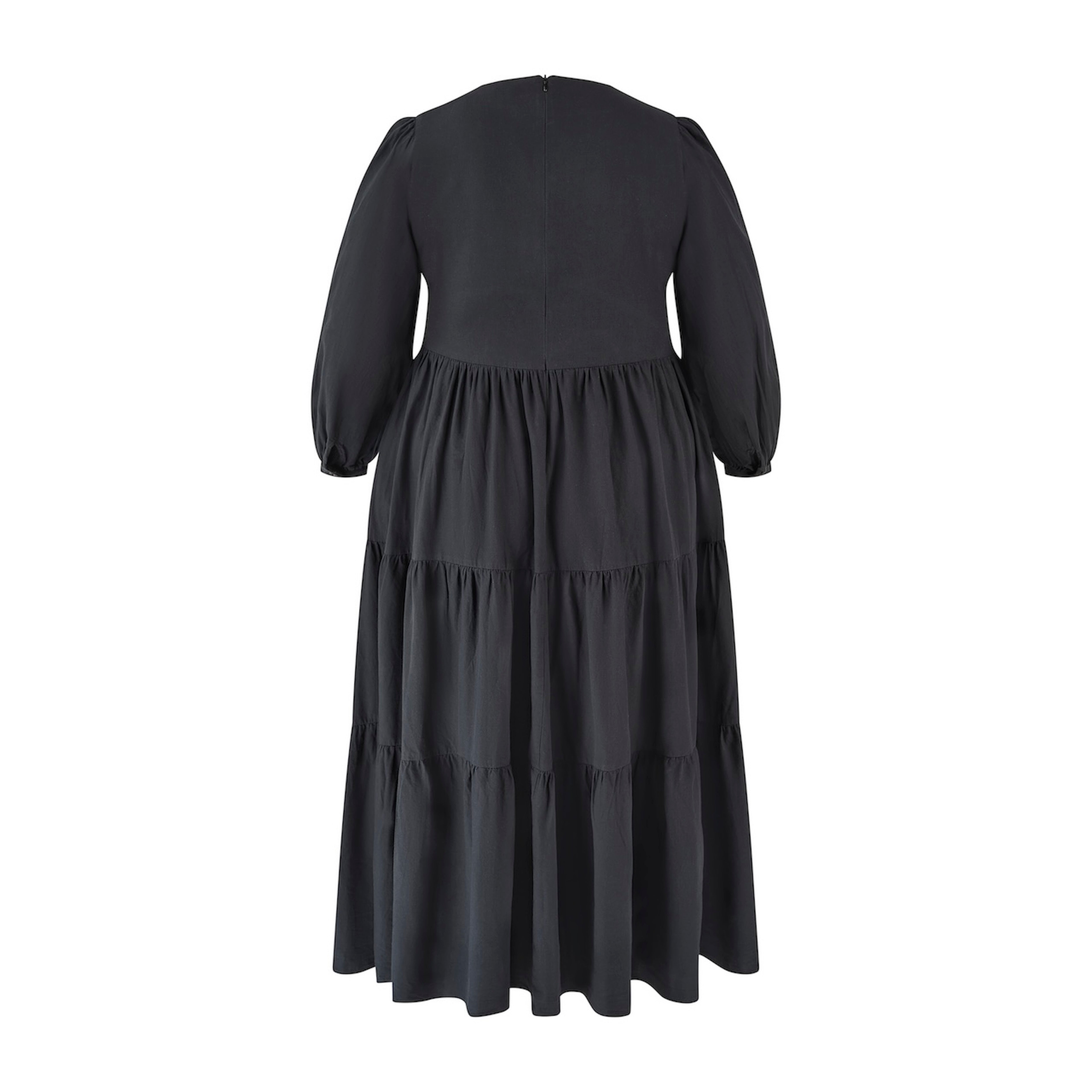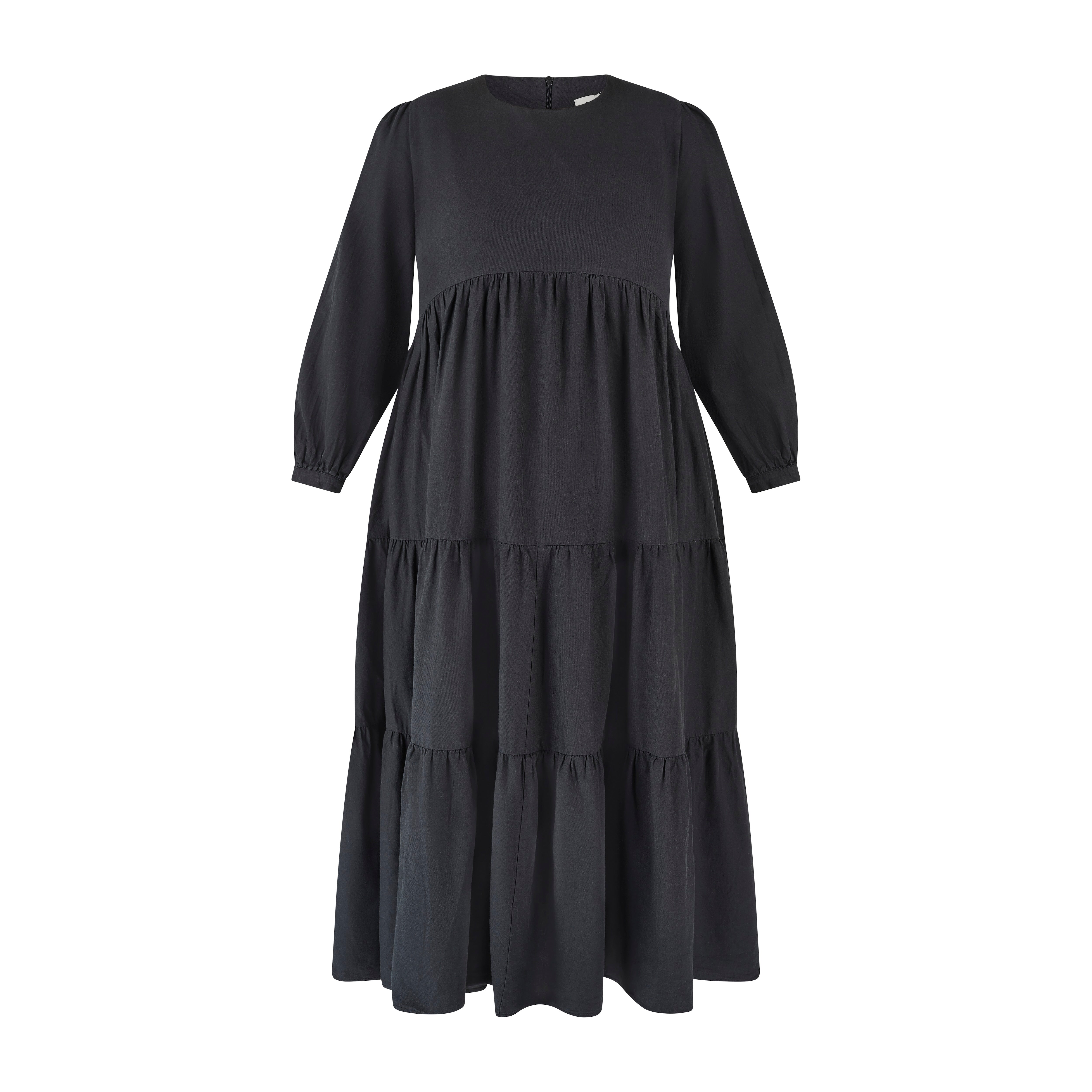 This effortless design is tailored for an easy fit, featuring a flattering dropped waist and a tiered mid-length skirt that creates flowing movement. Made from 100% cotton and hand-finished in Portugal, it exudes quality craftsmanship. Combined with a simple buttoned cuff on full-length sleeves, our tiered maxi dress is the perfect lightweight piece, offering comfort and a feminine silhouette.